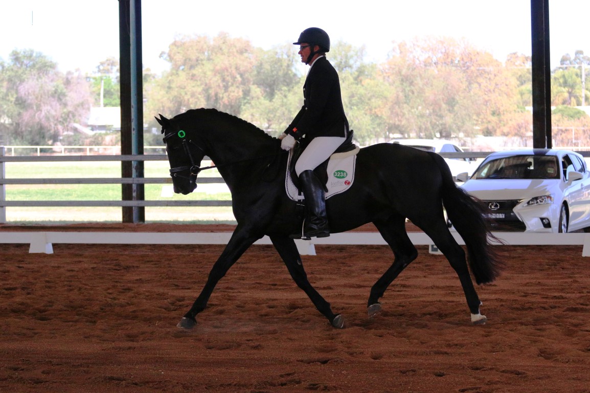 Nathan Harvey aboard his lovely black stallion Kiteroa Dominic in the Official Novice 2.3